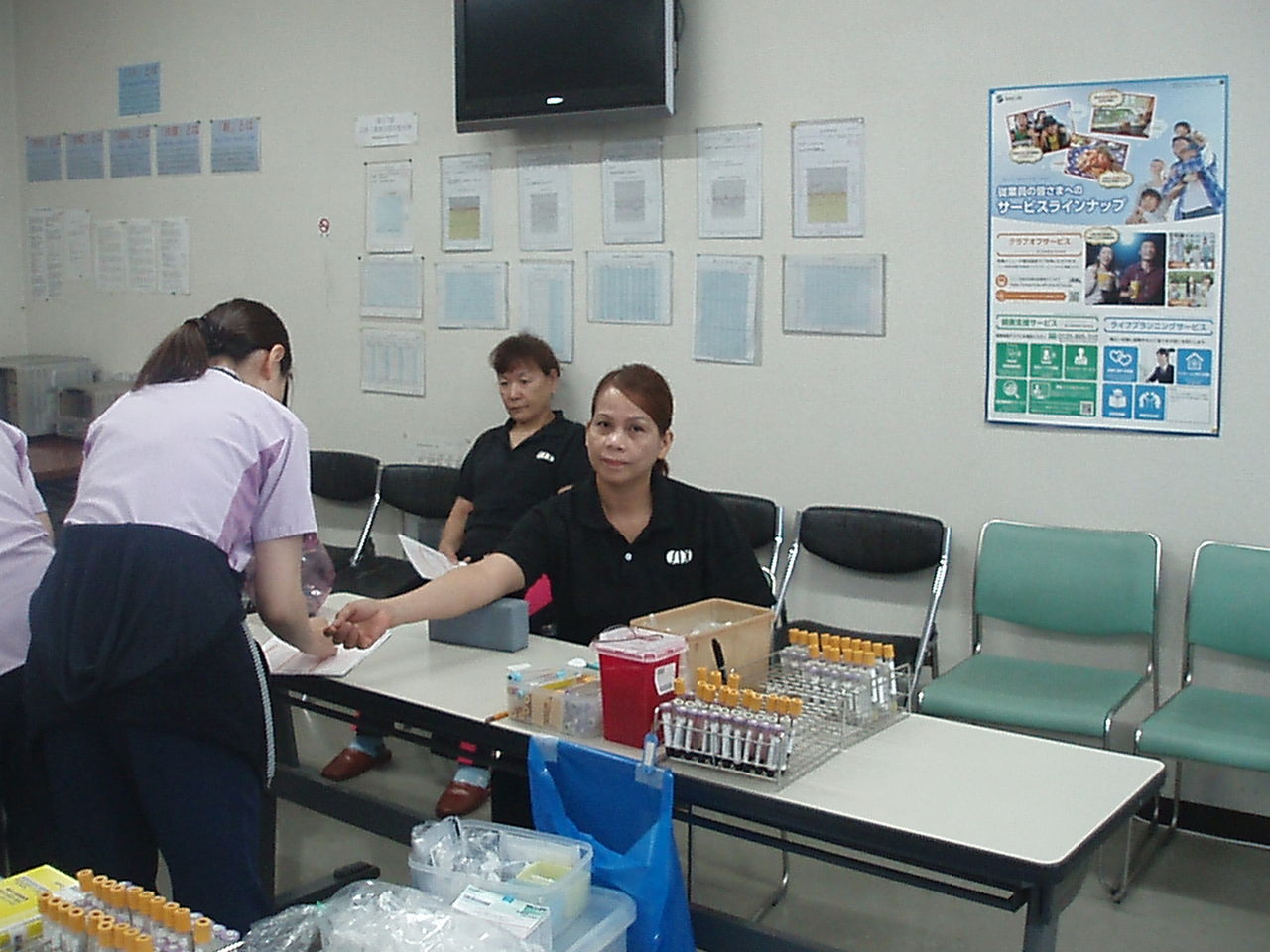 朝8時30分より本日年に1度の健康診断が行われました。受付風景