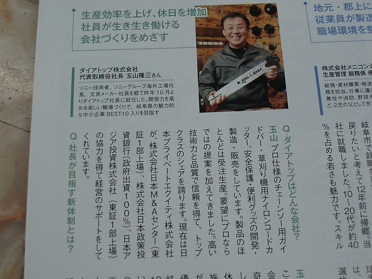 ダイヤトップの現社長様は、このフリーペーパーの、【郡上仕事人】というコーナーで掲載されました。