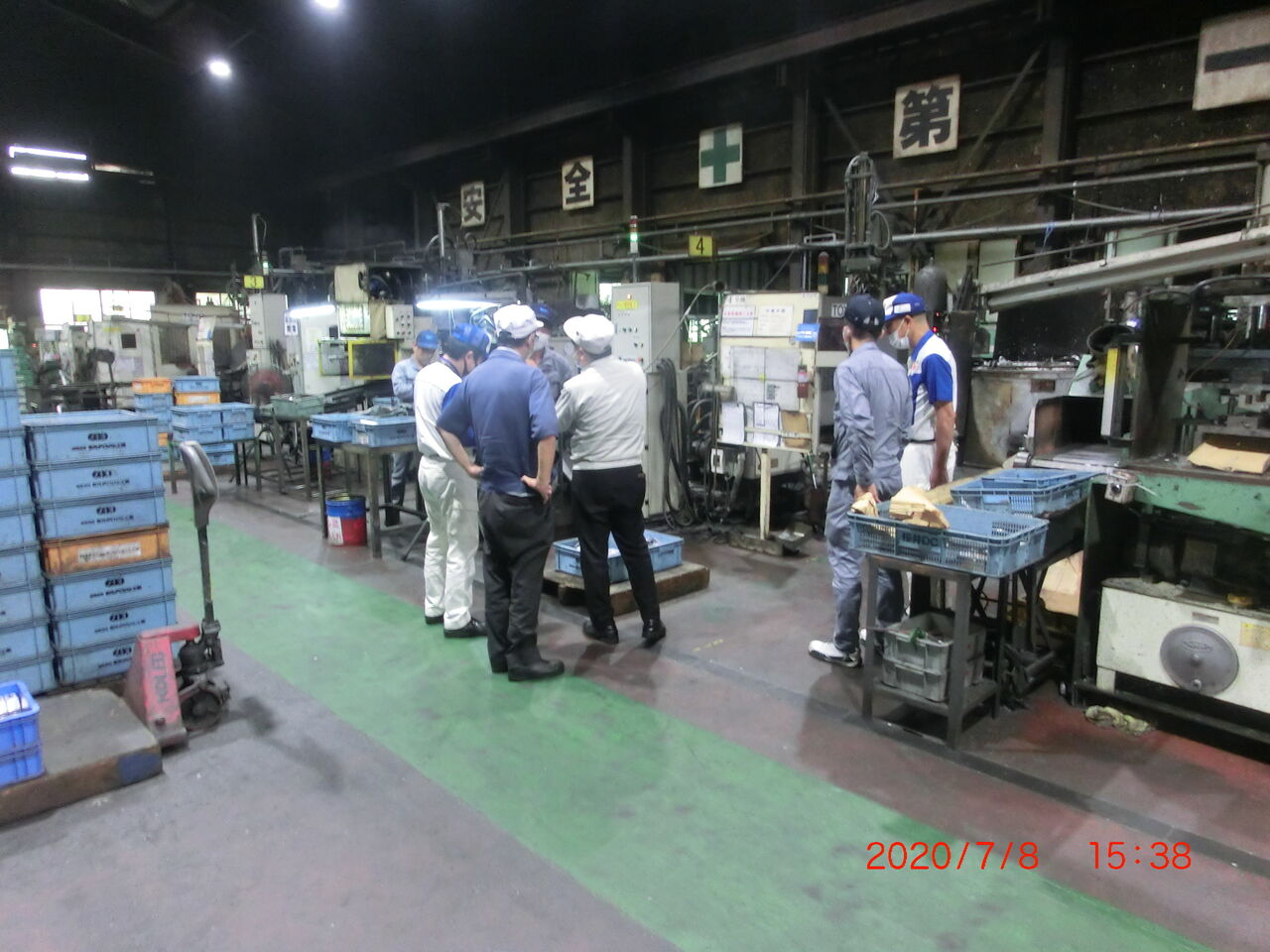 品質管理担当が現場のダイカストマシーンに表示してある条件票等を使用し