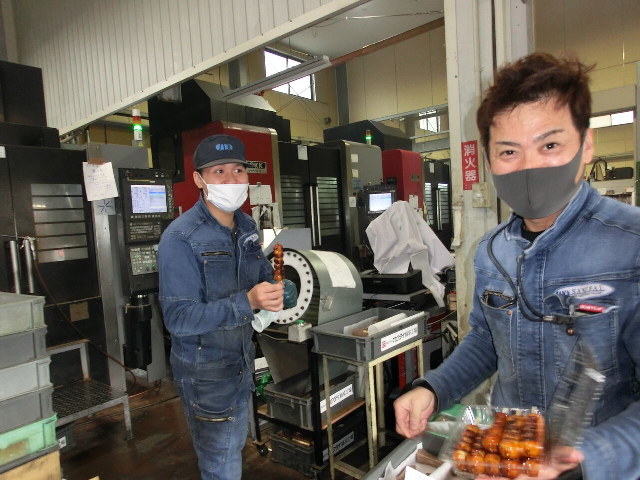 加工部での配布の様子。率先して上司が配布