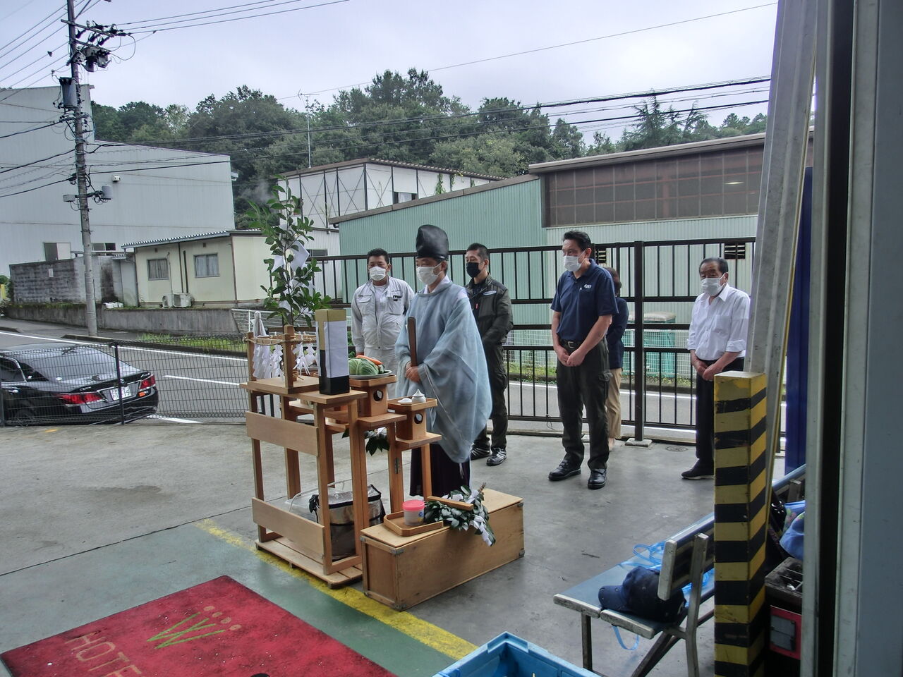 前回同様 お供え物をして社長 専務 原田鉄工所社長様 業者様が参加