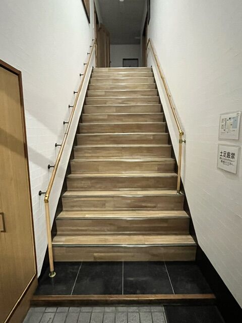 休み明け出社したら、経理のある事務所の階段の手すりが補強されておりました